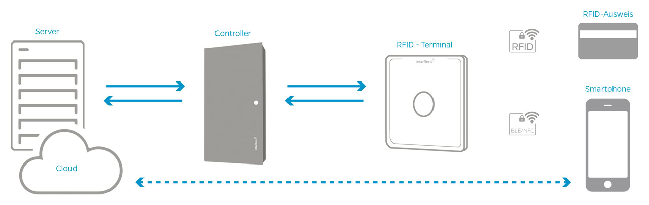 - Mobile Identifikation via Interflex Key App (inkl. „Shake to Open“, Geofencing, BLE-Weitbereichsbuchungen) – auch nutzbar als Wearable wie der Apple Watch