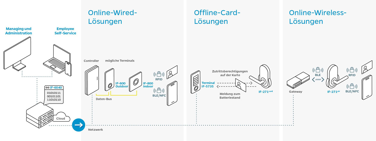 Technologievielfalt bei Interflex – individuell kombinierbar Interflex bietet Ihnen alle modernen Zutrittskontrollsysteme aus einer Hand: von Cloud-basierten Plattformen über online vernetzte Lösungen bis hin zu biometrischen Identifikationsverfahren. Die Systeme sind flexibel kombinierbar und lassen sich präzise auf Ihre Gebäudestruktur, Sicherheitsstufen und Nutzergruppen anpassen – unabhängig davon, ob Sie einzelne Türen oder internationale Standorte absichern und zentral steuern möchten.